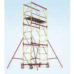Передвижная вышка представляет собой пространственную конструкцию башенного типа из плоских лестниц, имеющих три ступени.