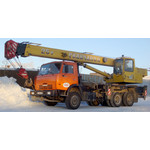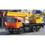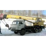грузоподъемностью 20 тонн на шасси автомобиля КамАЗ-53215 предназначен для выполнения погрузочно-разгрузочных и строительно-монтажных работ на рассредоточенных объектах.